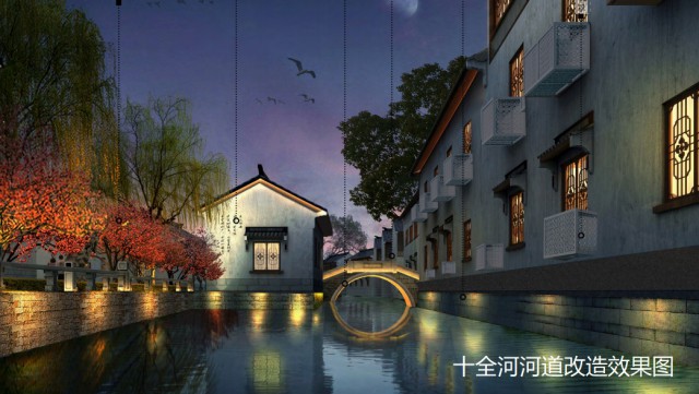 对十全街东段(长约950米)、官太尉河南段(长约580米)沿河区域进行河道驳岸修复、沿河铺装出新、墙面出新、管线梳理、空调外机美化、沿河绿化整治、景观节点增加等工作。