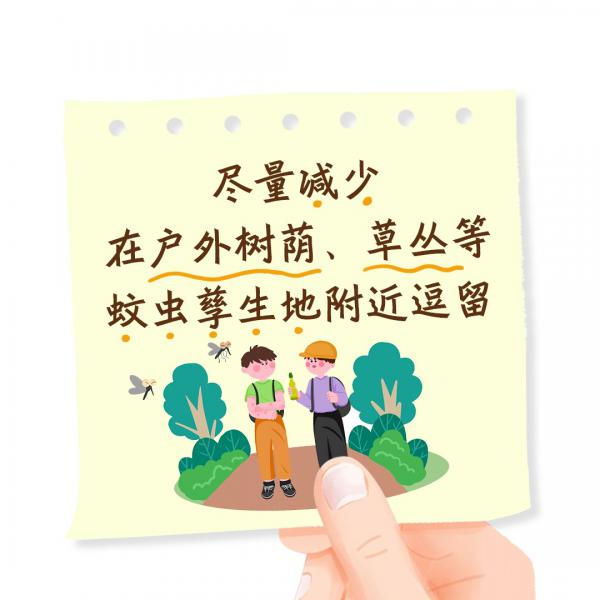减少蚊媒活动高峰期(上午6点到8点,下午5点到7点)的户外逗留时间,尽量穿着浅色、宽松的长袖衣裤,减少皮肤暴露。