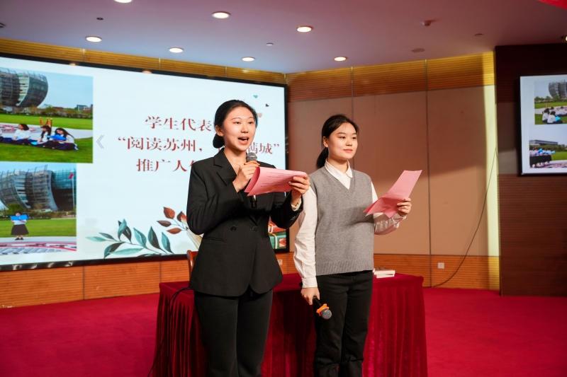 两名苏大学生代表宣读《“阅读苏州,书香满城”推广人倡议书》,呼吁更多人以阅读守护文脉、以行动传递书香;主办方同步宣布,明年将评选100名“阅读苏州·书香满城”推广人,激励青年学子及各界人士积极投身阅读传承,凝聚全民阅读合力。