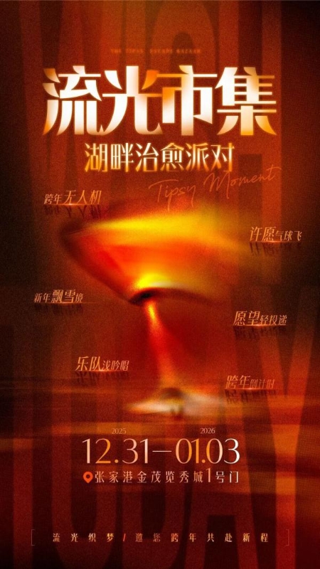 以“湖畔微醺”为主题,打造集美食、美酒、娱乐与社交于一体的特色消费场景,亮点包括无人机编程倒计时和“龙凤呈祥”主题大秀,融合科技与传统美学,现场将汇聚70余个创意摊位,全力点燃跨年消费热情。