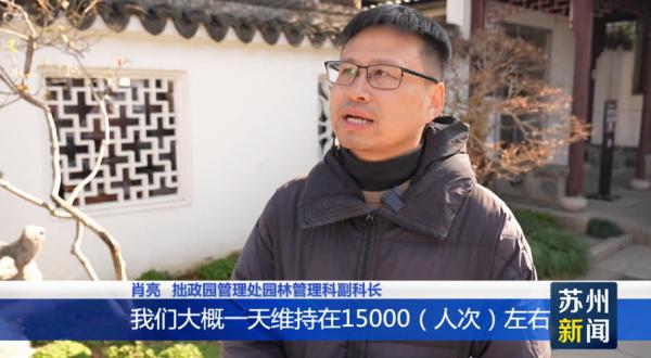 拙政园管理处园林管理科副科长肖亮表示,人流量大概是一天维持在15000人次左右,将近两个礼拜以后,蜡梅会进入盛花期。