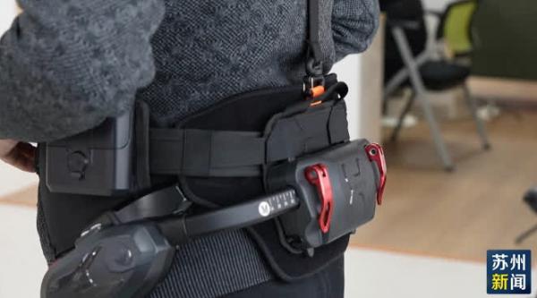 走进姑苏区首个基层适老生活体验中心,市民游老伯正在工作人员的指导下体验“AI外骨骼机器人”。科技助力让他轻松实现场内来回踱步,连平时最为吃力的爬楼梯,也变得省力不少。