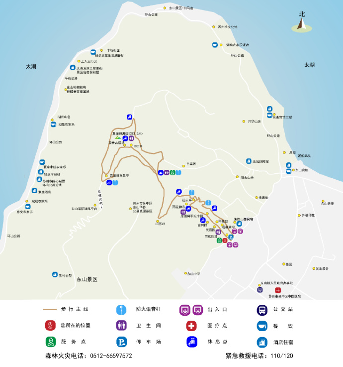 东山西街(诸公井亭、响水涧)→洞庭饭店/莘子阁面馆→雨花胜境→莫厘峰森林步道