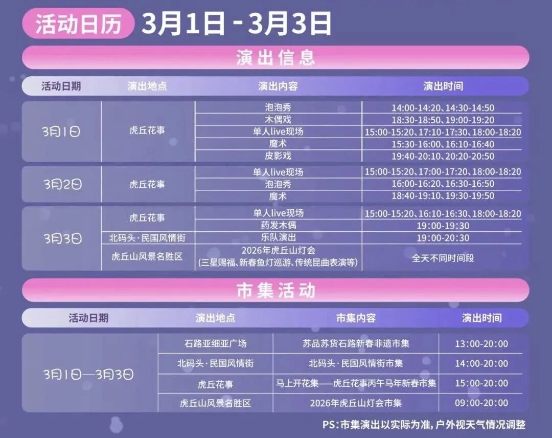 活动地点:姑苏区虎丘山、虎丘花事、北码头·民国风情街、石路亚细亚广场