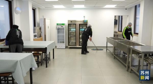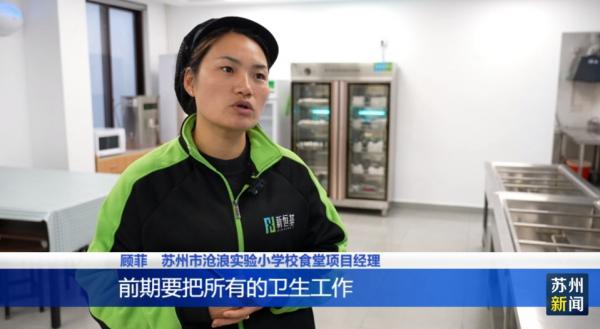 苏州市沧浪实验小学校食堂项目经理顾菲介绍,前期要把所有的卫生工作做好,角角落落都要重新打扫一下,包括学生的工具全部要清洗,然后进行消杀消毒。