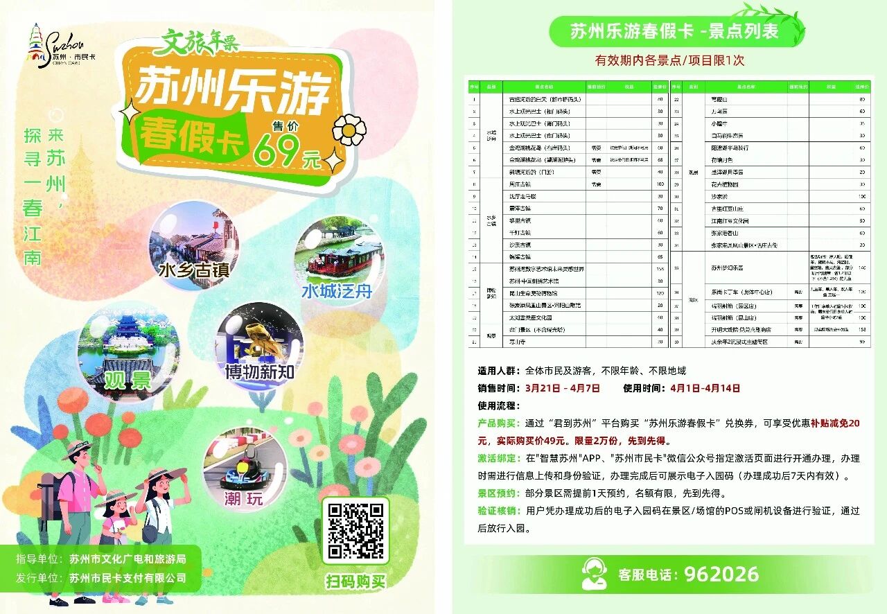 如果你是全家出游,可以购买这张“王炸”卡——苏州乐游春假卡。