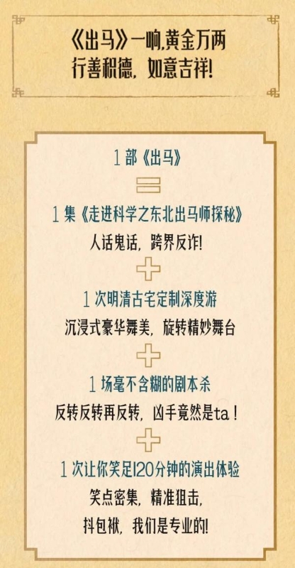 再加上魏翔领衔主演,开心麻花惊怂悬疑喜剧《出马》这次,清明假期,连演三场,千万不要错过!