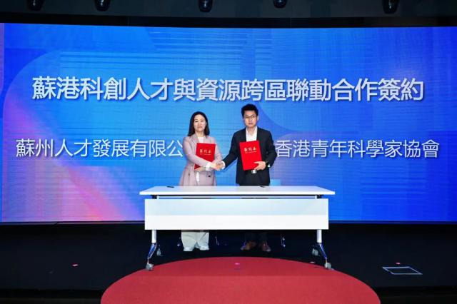 苏州人才发展公司与香港青年科学家协会 签署合作协议 。未来,双方将在人才培养、项目孵化等方面全面合作,让两地青年人才协同创新。